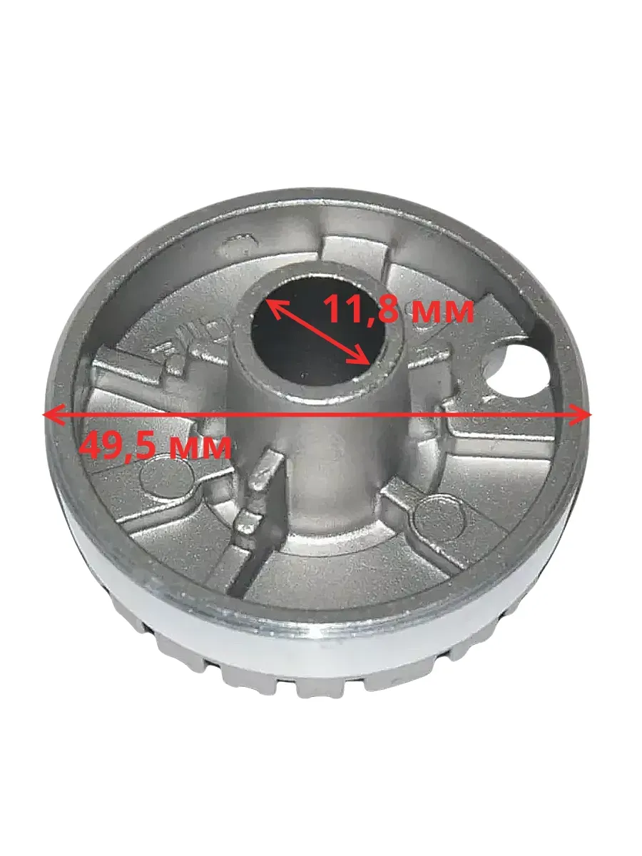 Рассекатель горелки стола малой мощности для газовой плиты Darina (Дарина), De Luxe (Делюкс), Terra (Терра), Лысьва. Диаметр рассекателя: 49,5 мм Наружный диаметр посадки: 16 мм Внутренний диаметр посадочного отверстия: 11,8 мм Общая высота: 27 ммСовместимость