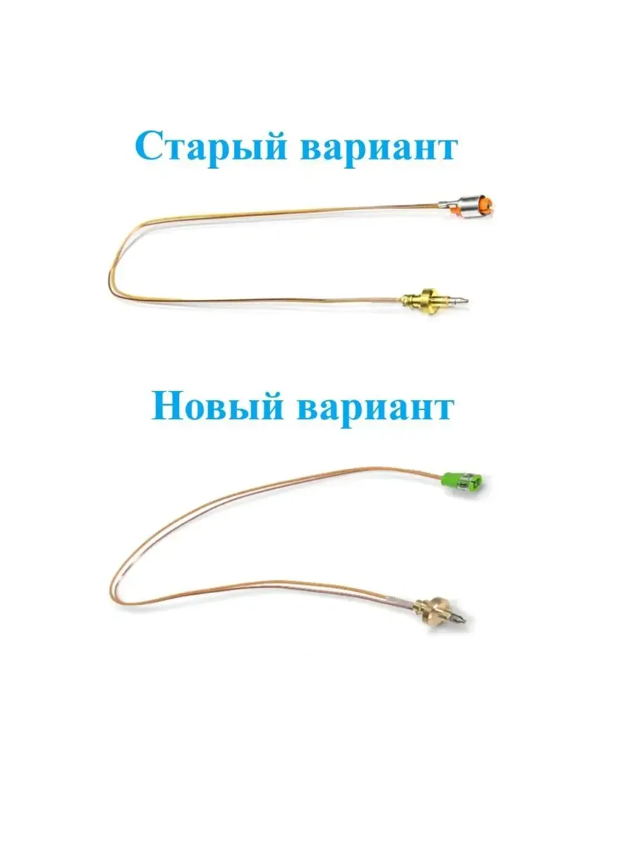 Термопара газконтроля для газовой плиты Gorenje (Горенье) Длина: 500 мм Код взаимозамены: 162119 Поставляются с разным крепежом: Оранжевый старый вариант термопары, зеленый новый. Обе взаимозаменяемые и устанавливаются в газовый кран одинаково.