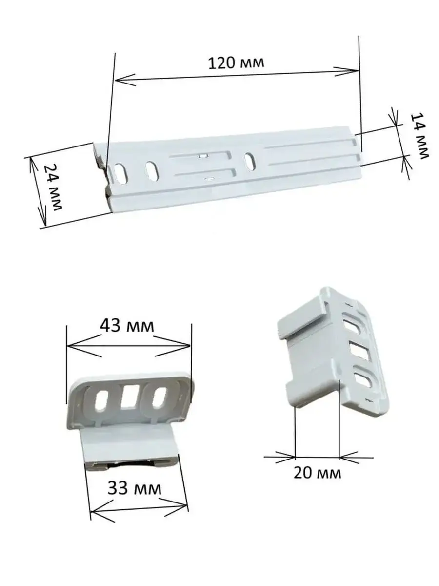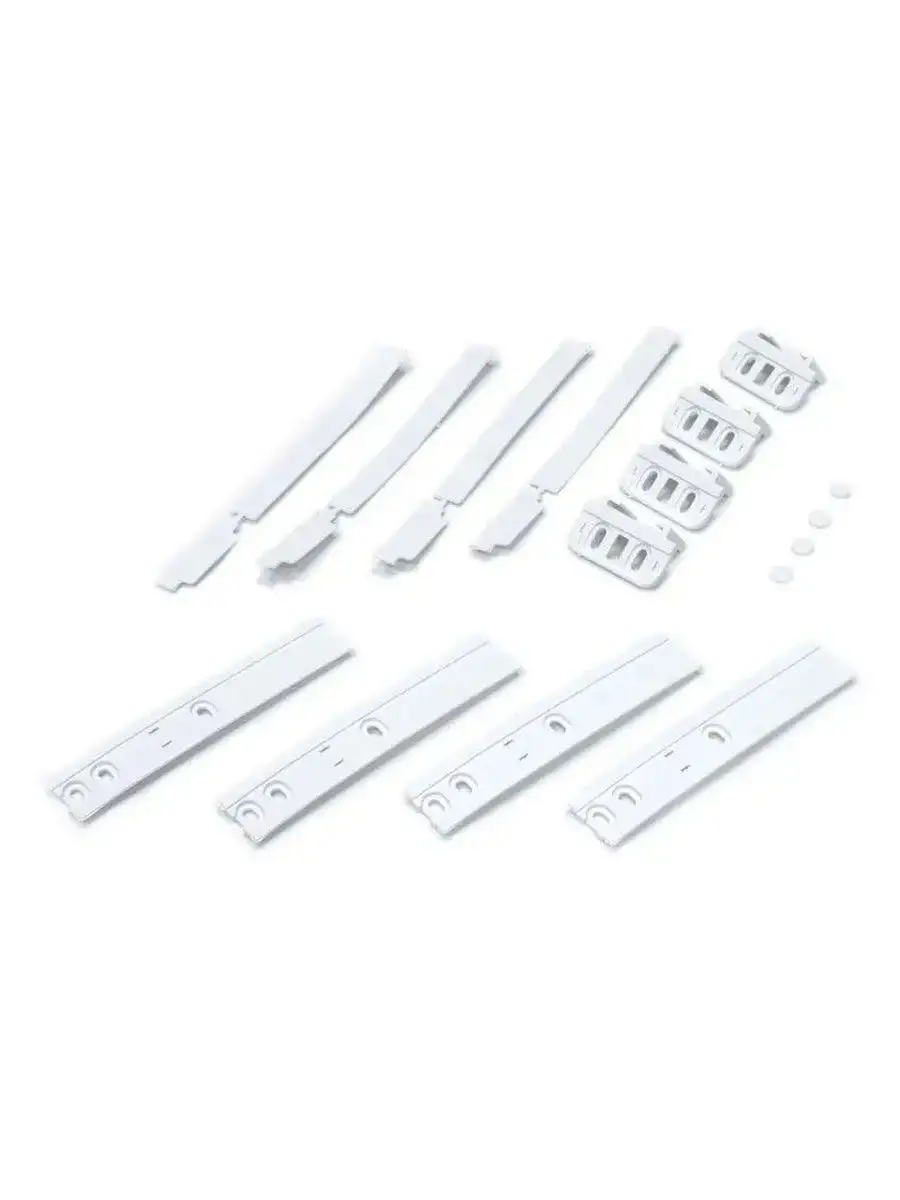 Крепеж (крепление, петля) для навешивания фасада на две двери встроенного холодильника. В комплекте 4 направляющих (120x24 мм.), 4 скобы и заглушки. Установочный комплект C00312150 на 2 двери. Совместим с моделями холодильников многих производителей: Whirlpool, Indesit, Ariston, HOTPOINT, IKEA, BAUKNECHT и др. Совместим с моделями холодильников многих производителей: Whirlpool, Indesit, Ariston, HOTPOINT, IKEA, BAUKNECHT и др.Совместимость