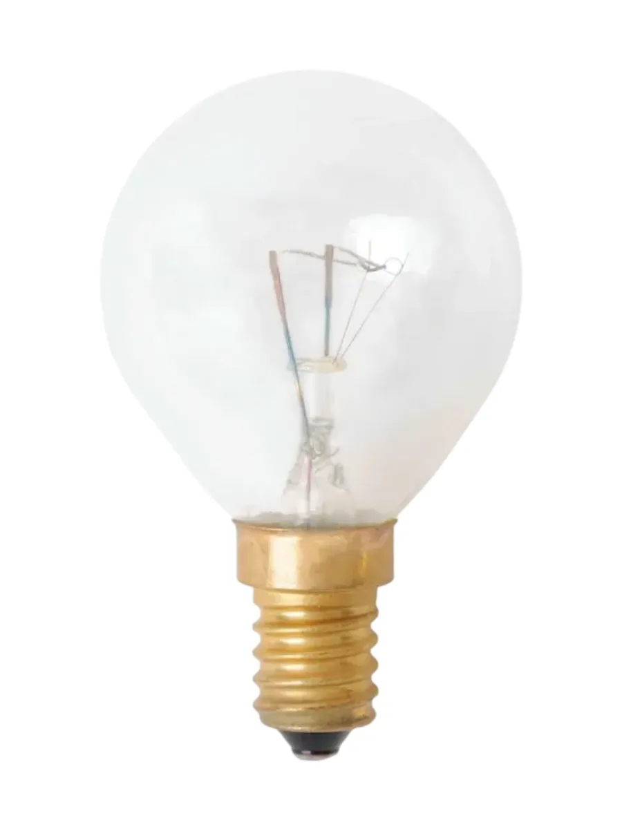 Лампочка освещения духового шкафа термостойкая Цоколь: E14 Мощность: 40 Вт Термостойкая: до 300℃ Цветовая температура: 2700 K Ресурс: 1000 часов Размер стеклянной части: 50*45 ммСовместимость