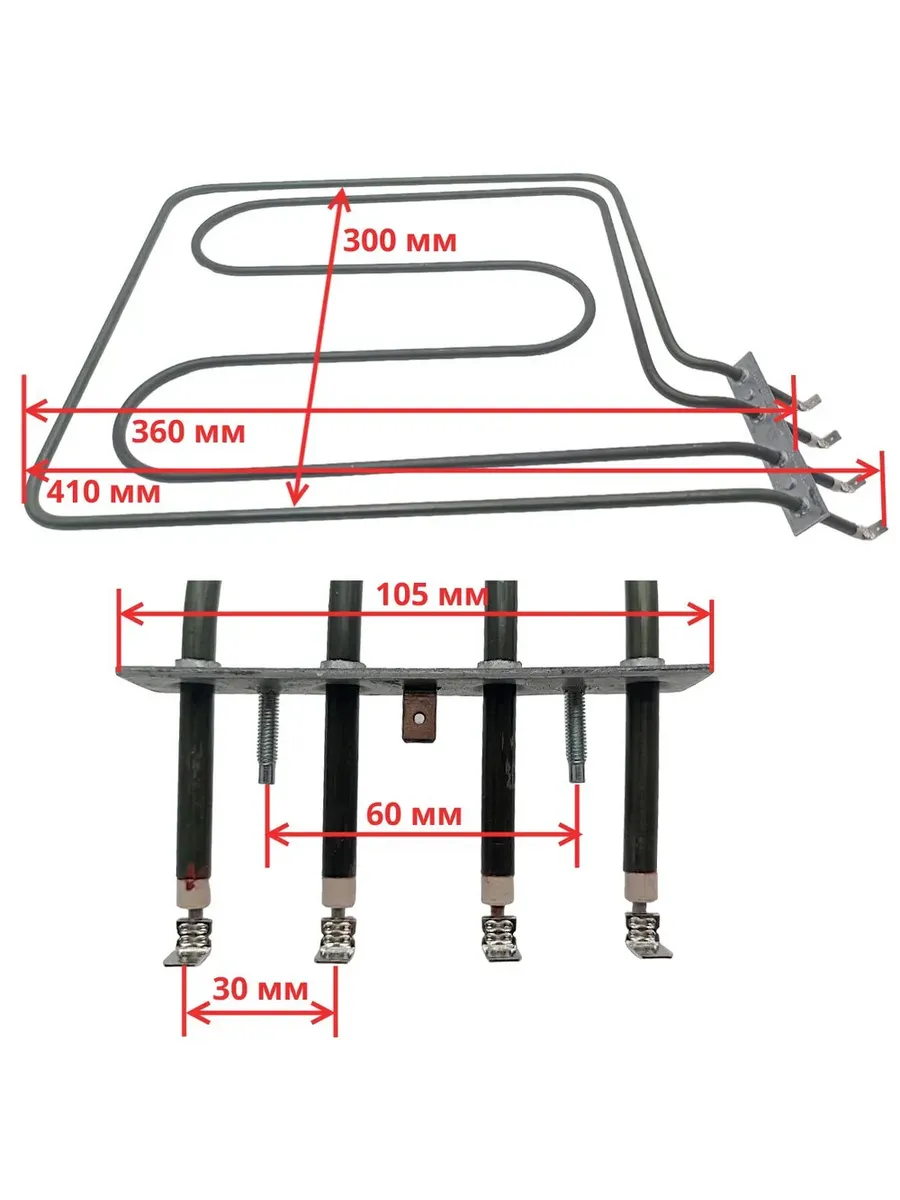 Тэн гриля для духовки Hansa 8019010 Расположение: верхний Тип: Двухконтурный Размеры: Длина общая: 400 мм Длина до фланца: 360 мм Ширина: 300 мм Длина фланца: 105 мм Ширина фланца: 20 ммСовместимость
