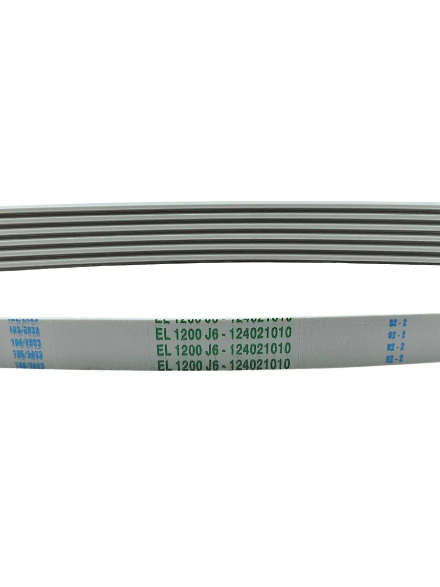 Приводной ручейковый ремень Вес товара: 40 г Длина ремня: 1200 мм Тип сечения клина: J Дорожки: 6 Маркировка ремня: EL 1200 J6 - 124021010