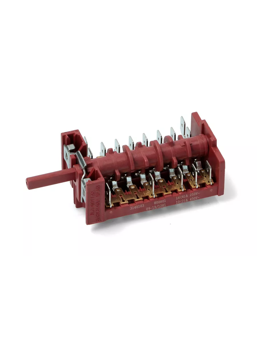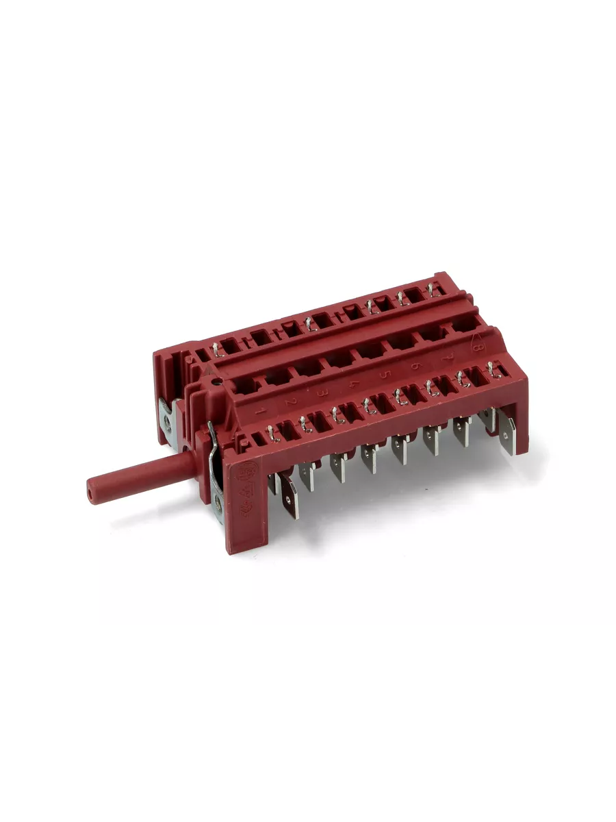 Переключатель режимов для духовки Teka, Kuppersberg. Длина штока - 23 мм Длина корпуса: 70 мм. Ширина корпуса: 41 мм. 10 позиций переключения (9+0). Взаимозаменяется с переключателем DREEFS 11HE219.