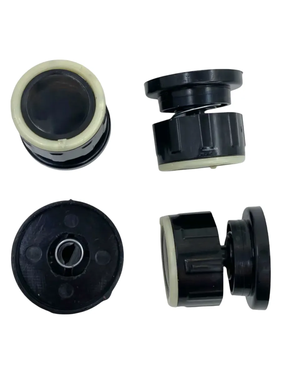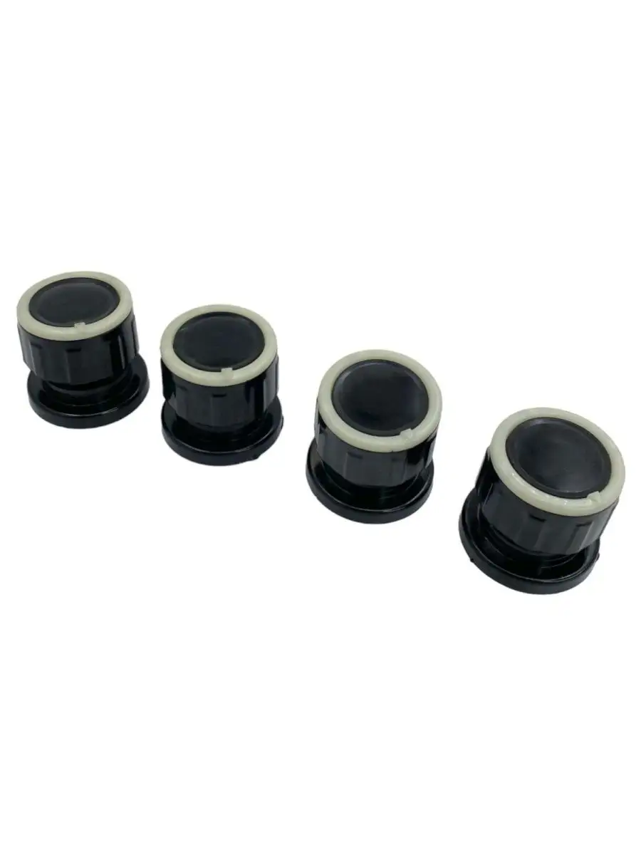 Комплект универсальных ручек для газовой плиты (варочной поверхности) Цвет: чёрные с серой окантовкой Диаметр: 40 мм Высота без ножки: 25 мм Общая высота: 35 мм Размер посадки: 6 х 4 мм В комплекте: Ручки 4 шт. Основания 4 шт. Пружины 4 шт.Совместимость