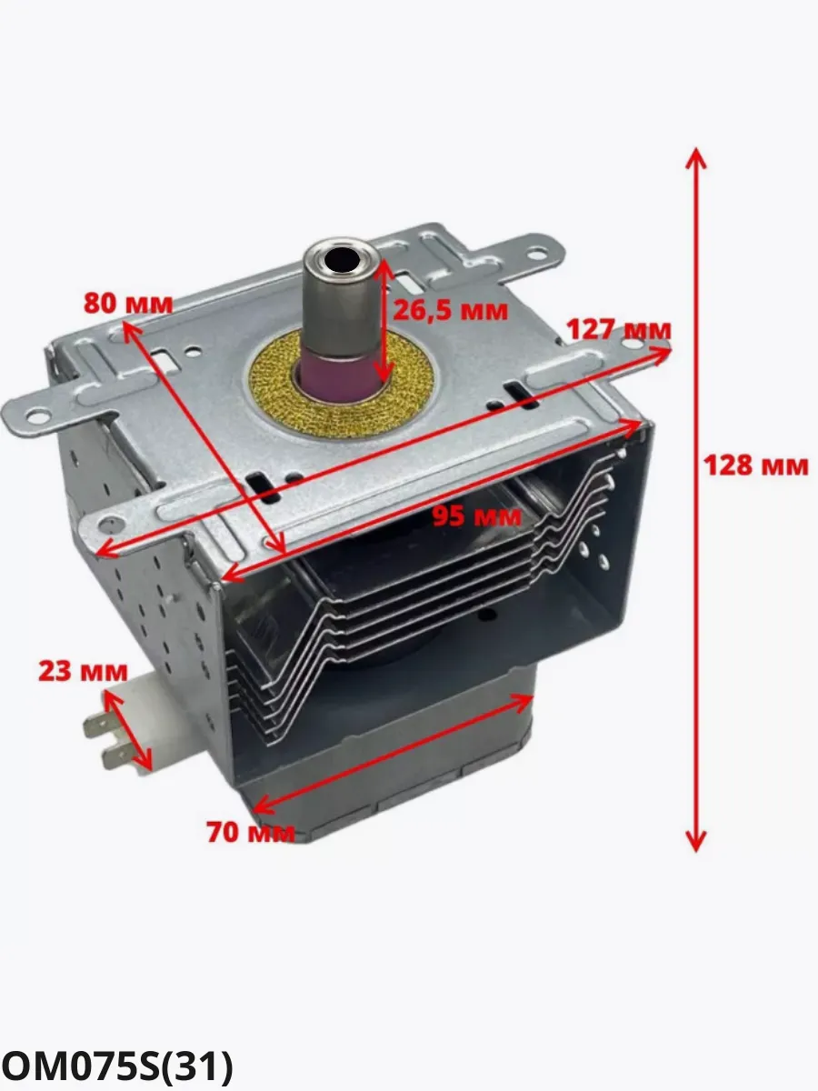 Магнетрон для микроволновой СВЧ-печи Samsung. Артикул OM75S(31) ESGN. (Возможная наклейка OP75S(31) ESGN.) Питание: Стабилизированный однополуволновый удвоитель напряжения. Частота: 2465 MHz (при согласованной нагрузке). • Гарантия 3 месяца при установки изделия специалистом из Авторизованного сервисного центра (АСЦ). Время предразогрева: 0 сек. Уважаемые покупатели! Перед оформлением заказа проверяйте совместимость детали со своей моделью или задавайте вопрос продавцу для корректного подбора через форму "Вопрос о товаре" Причины почему микроволновая печь может не греть: Перегорел трансформаторный предохранитель. Сломан проходной конденсатор. Поврежден таймер или блок управления прибора. Вышел из строя умножитель, состоящий из 2 взаимозависимых частей – высоковольтного диода и конденсата. Вышел из строя магнетрон Повреждена слюдяная пластина. Неисправный инвертор. Заявки на брак принимаются только с предоставлением видео прозвона контактов магнетрона мультиметром. Список не полный. Для моделей: AGE83X/XAP, AGE83X/XPE, AGW83E-SB/XAP, AGW83E-WB/XAP, AMC4080AAB, AMC4080AAW, AME832KC/XAP, AME83KRS-2/AP, AME83KRW-1/AP, AME83M/XAP, AME83M/XPE, AME83X/XAP, AME83X/XPE, AMW784B/XAP, AMW784S/SAM, AMW784W/SAM, AMW784W/XAO, AMW784W/XAP, AMW784WE/XAP, AMW831K/XAP, AMW831K/XPE, AMW832K/XAP, AMW832K/XPE, AMW83E-SB/SAM, AMW83E-SB/XAP, AMW83E-SB/XPE, AMW83E-SB/XTC, AMW83E-WB/SAM, AMW83E-WB/XAP, AMW83E-WB/XPE, AMW83E-WB/XTC, AMW83E/XTC, CE2718NR/BWT, CE2738NR/BWT, CE283GN-S/XEH, CE283GNR-S/BWT, CE283GNR/BWT, FW87SB/XEF, FW87SBTR/BW, FW87SR-B/BWT, FW87SR-W/BWT, FW87SST/XEF, FW87SSTR/BWT, FW87SUB/BW, FW87SUB/XEO, FW87SUG/BW, FW87SUST/AND, FW87SUST/XEO, FW87SUT/BW, FW87SUW/BW, FW87SW/XEF, FW88SUB/EO, FW88SUB/XEE, FW88SUST/XEE, G2711N-S/INT, G2711N-S/XEH, G2711N-S/XEO, G2711N/BOL, G2711N/GEN, G2711N/INT, G2711N/ITM, G2711N/TAW, G2711N/XEC, G2711N/XEH, G2711N/XEO, G2711N/XET, G2712N/ALB, G2712N/BOL, G2712N/ERP, G2712N/GEN, G2712N/STV,Совместимость