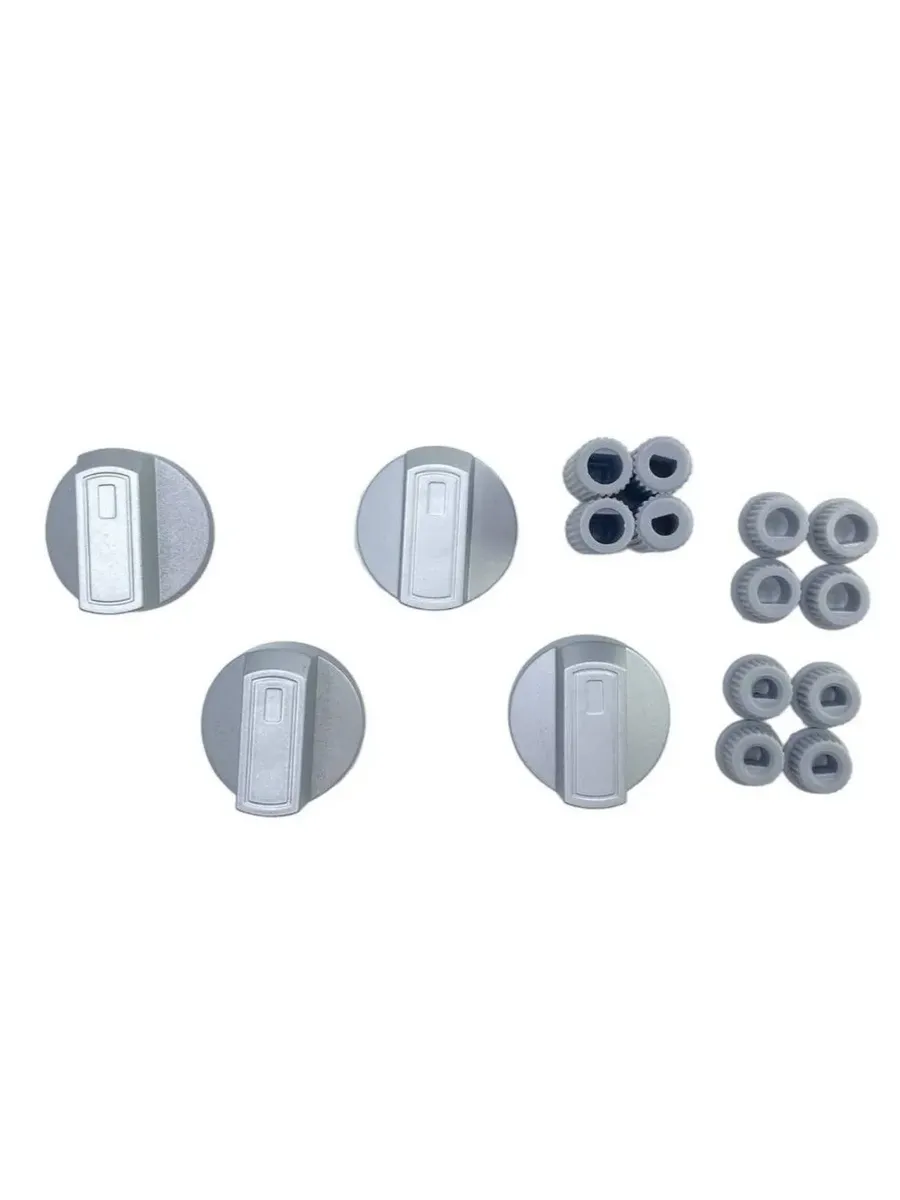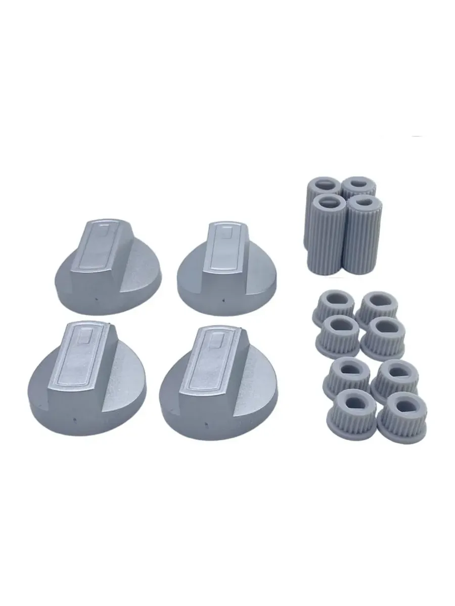 Ручки управления плиты универсальные с переходниками (4шт/комплект) Ручки: Диаметр - 38 мм, высота - 20 мм. Переходники (штоки) трех типов: 1. Диаметр - 13 мм, высота - 29 мм, диаметр посадки - 8 мм или 6 мм (двусторонний). 2. Диаметр - 16 мм, высота - 10 мм, диаметр посадки - 8 мм. 3. Диаметр - 16 мм, высота - 10 мм, диаметр посадки - 6 мм. Цвет: Серый.Совместимость